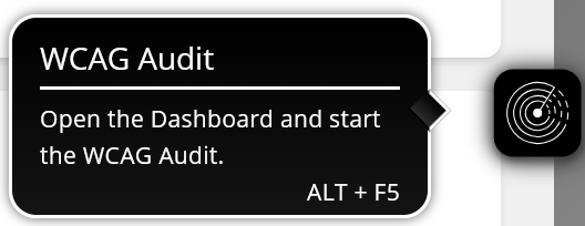Once you are correctly logged in and on a licensed page, a radar symbol will appear at the bottom right.