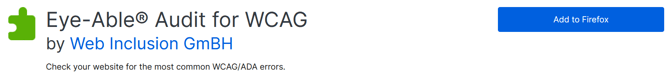 Eye-Able Audit is a browser extension for Firefox and all Chromium-based browsers.