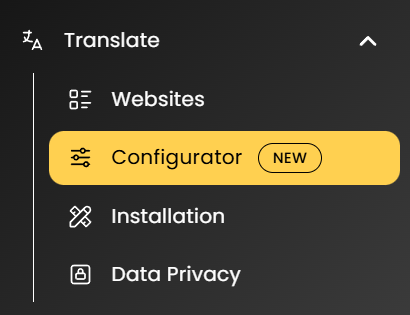 To do this, navigate to the Translate menu and go to the "Configurator" sub-menu.