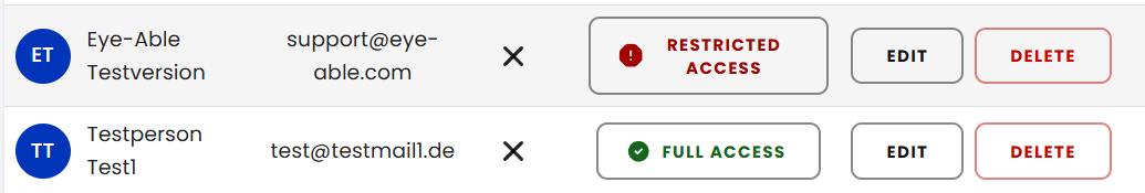 Here, you can immediately see what type of access each person currently has.