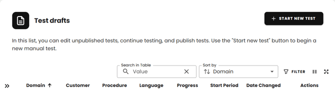 After starting, your test draft can be found automatically under the “Test Drafts” tab in the overview list.