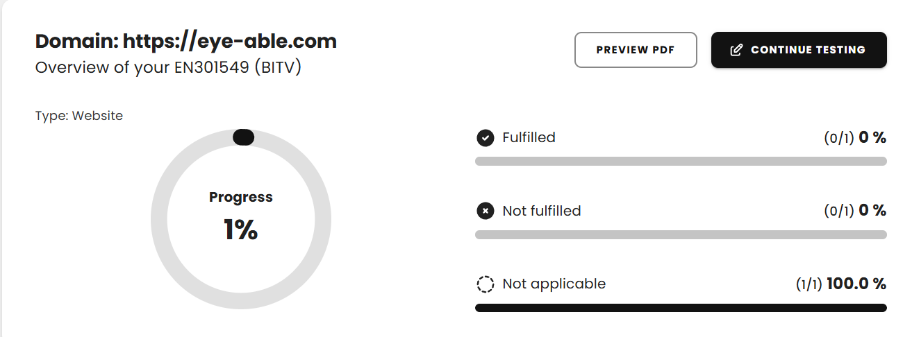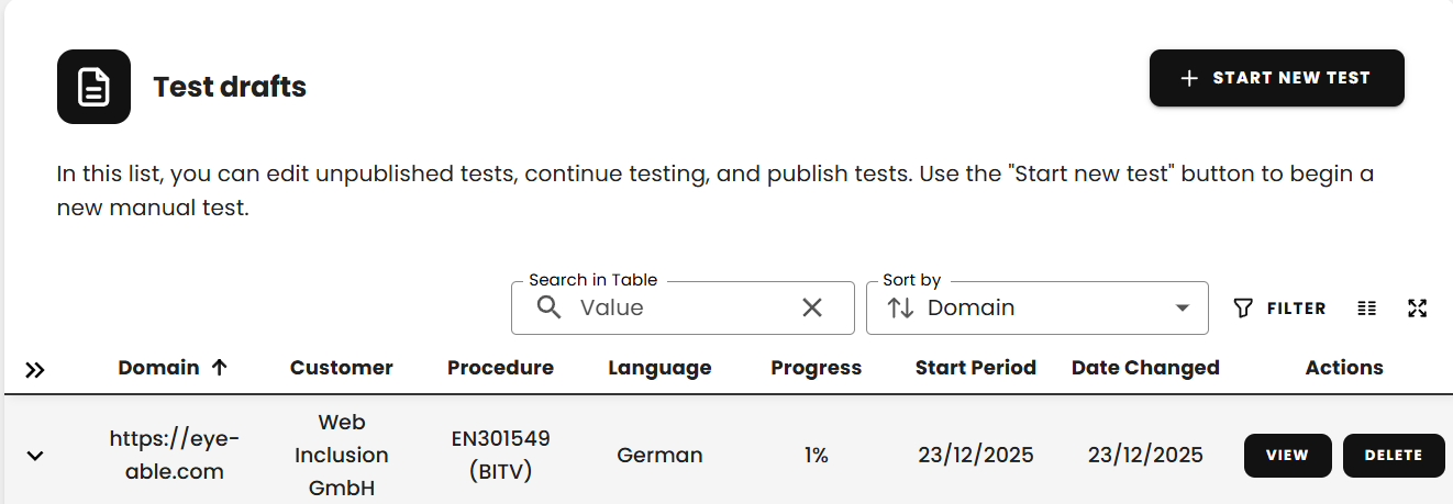 You can continue to commission manual tests from Eye-Able as usual. In addition to the familiar PDF reports, the results of manual tests are now also available interactively in the dashboard. You can find them under the tab “Completed Tests.”