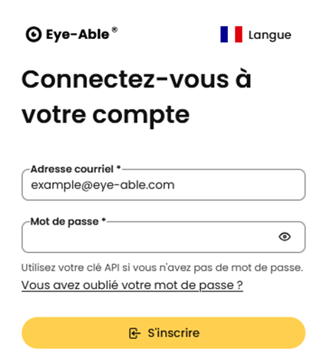 Accédez à la section de connexion du tableau de bord Eye-Able.