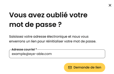 Saisis dans le champ prévu à cet effet l'adresse e-mail avec laquelle ton compte Eye-Able a été créé.