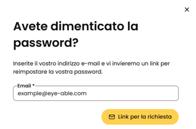 Inserisci nell'apposito campo l'indirizzo e-mail con cui hai registrato il tuo account Eye-Able.