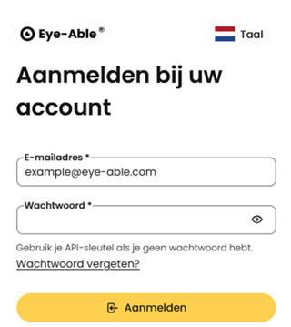 Open het inloggedeelte van het Eye-Able-dashboard.