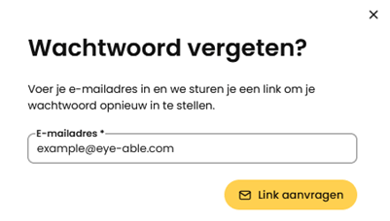 Vul in het daarvoor bestemde veld het e-mailadres in waarmee je Eye-Able-account is geregistreerd.