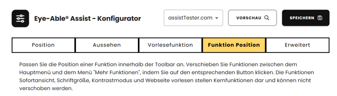 Wie ändere ich die Position des Assist Icons auf meiner Website und die üostion der funktionen in der Toolbar?