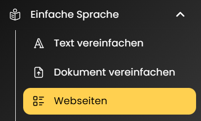 Öffnen Sie Ihr Dashboard und navigieren Sie zu "Einfache Sprache".