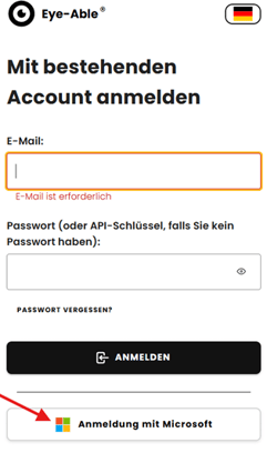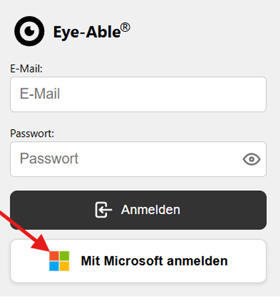 Eye-Able Dashboard: Anmeldung direkt über „Mit Microsoft anmelden“.