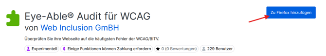 Hier klicken Siedort auf “Zu Firefox hinzufügen“, um die Eye-Able Audit Browsererweiterung zu Mozilla Firefox hinzuzufügen.