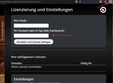 Über das Zahnrad-Symbol in der Erweiterung können Sie die Einstellungen öffnen und Ihre aktiven Lizenzen einsehen.