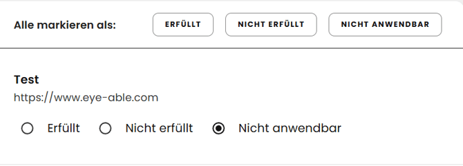Darüber hinaus haben Sie die Möglichkeit, eigene manuelle Testergebnisse zu protokollieren, sofern Sie bereits Erfahrung im Bereich Barrierefreiheitstests haben.