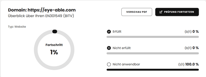 So behalten Sie jederzeit den Überblick über den Fortschritt und die Inhalte Ihres manuellen Barrierefreiheitstests.